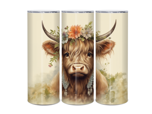 20oz Highland Cow Floral Crown Tumbler