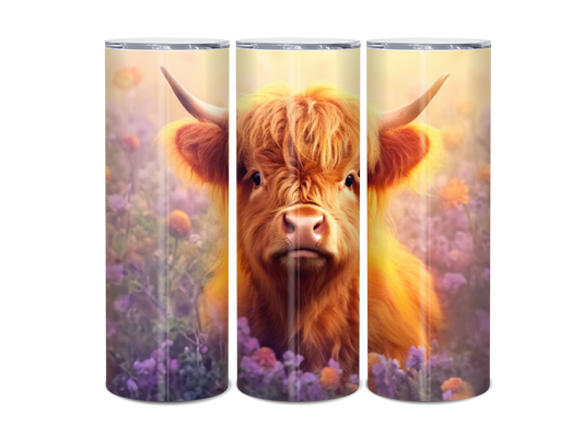 20oz Highland Cow Magic Hour florals