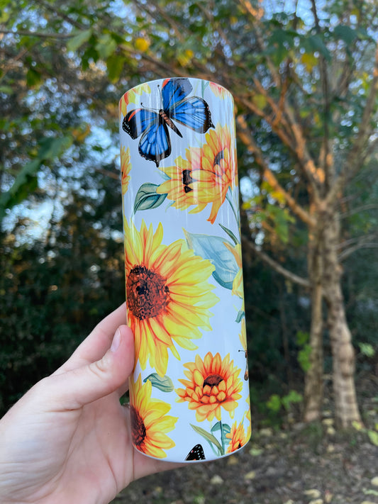 20oz Yellow Sunflower with butterfly tumbler
