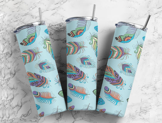Bird Feathers On Blue background Tumbler
