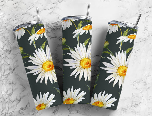 Black and White Daisies Floral Tumbler
