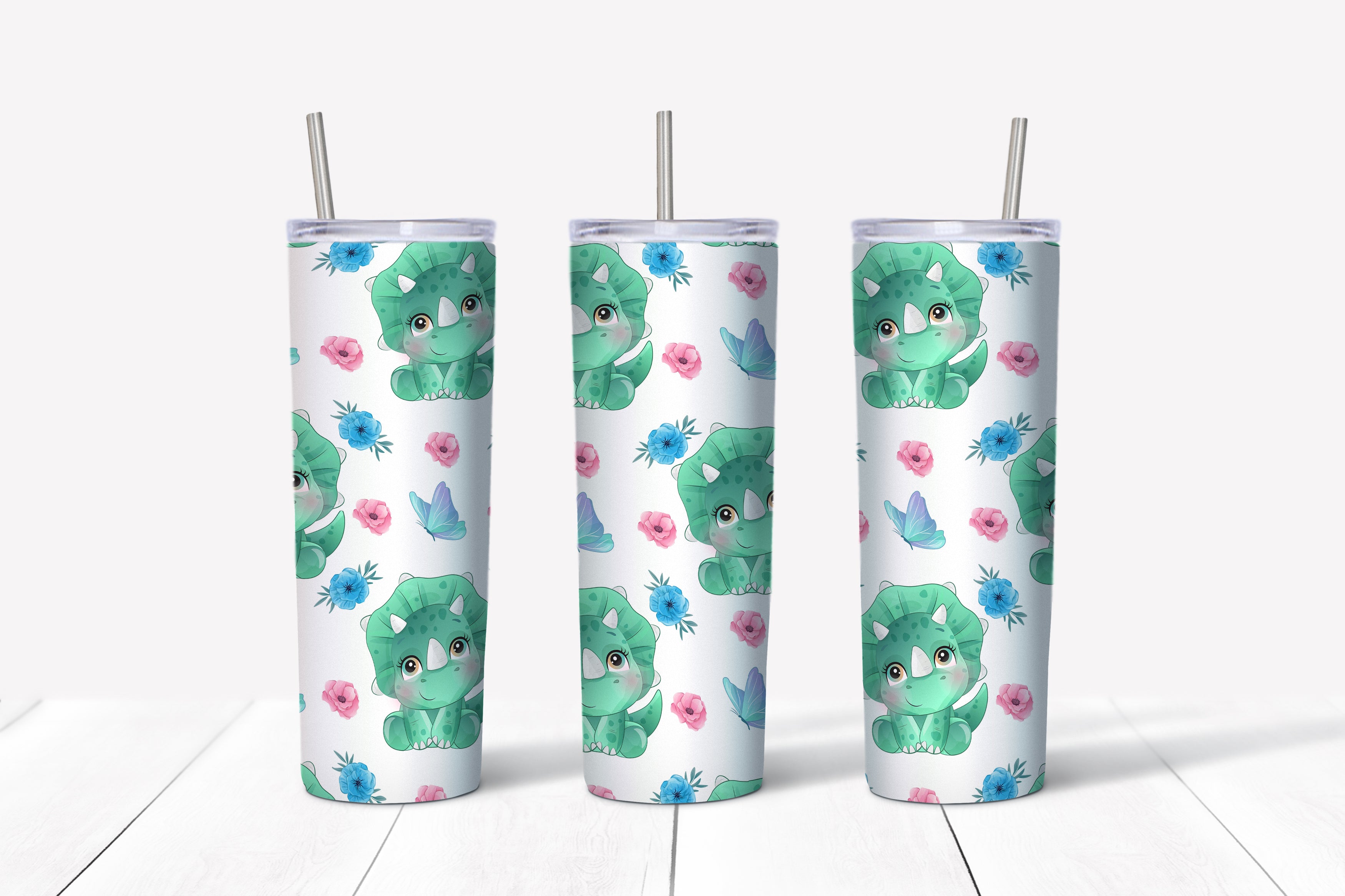 Green baby dino sublimation tumbler