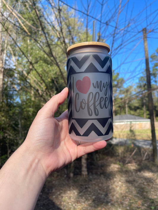 I Love Coffee Frosted Glass Cups