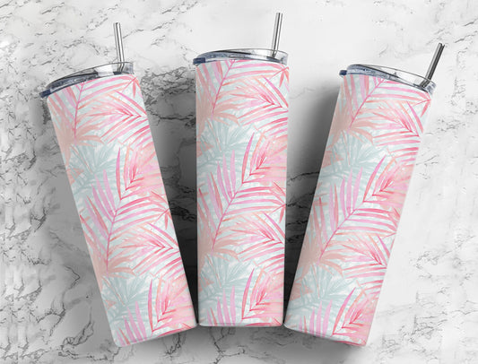 Pastel Floral Palm Tree Frons Leaves Tumbler