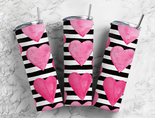 Pink Hearts with Black & White Stripes Tumbler