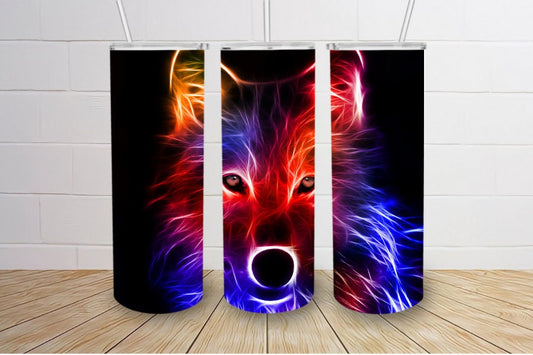 Rainbow Wolf Head Tumbler