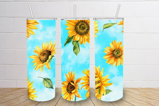 Yellow Sunflower Blue Skies Tumbler